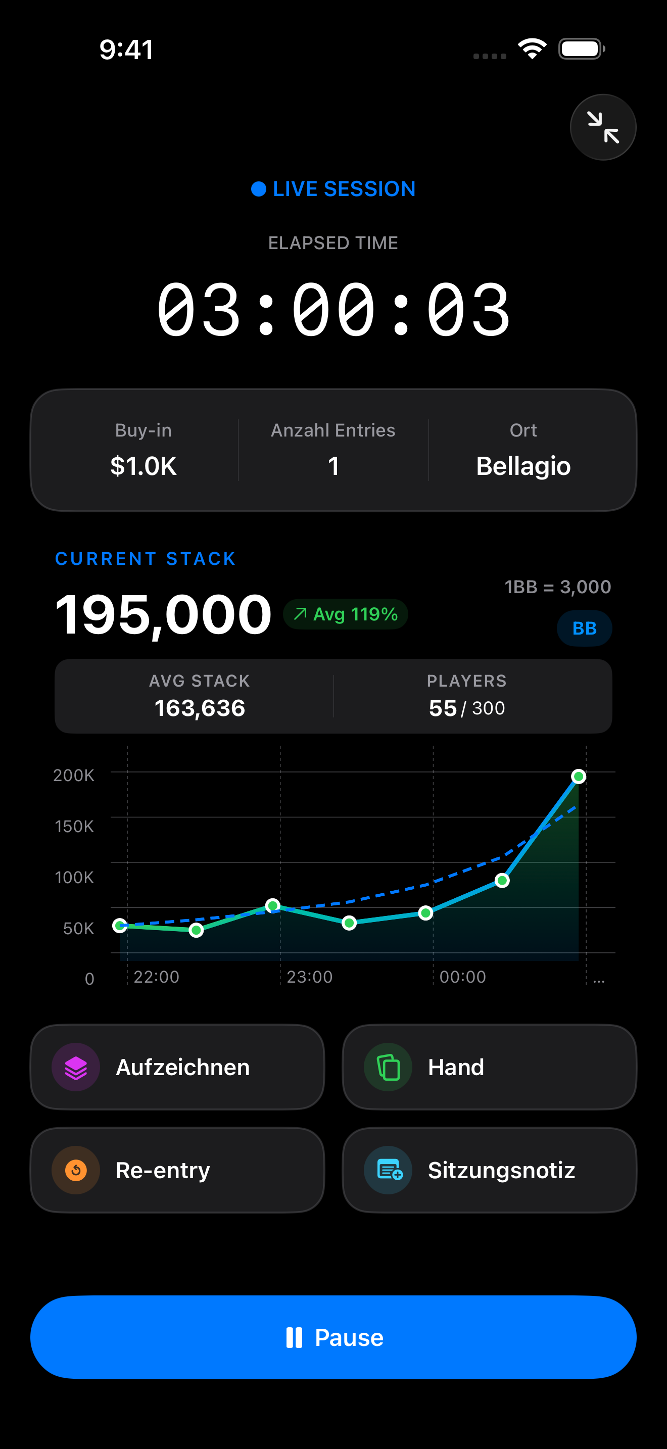 Im App Store herunterladenErfasse Poker-Sitzungsergebnisse in Echtzeit. Unterstützt Cash Games und MTT.