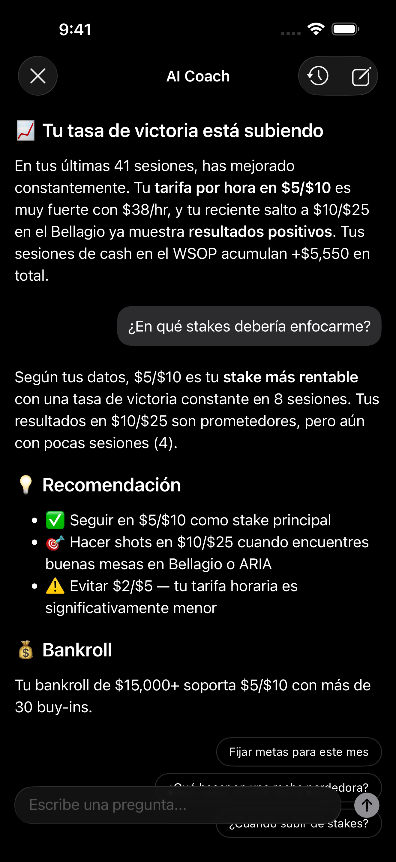 Mejora tu estrategia con análisis por stakes, lugar y período.