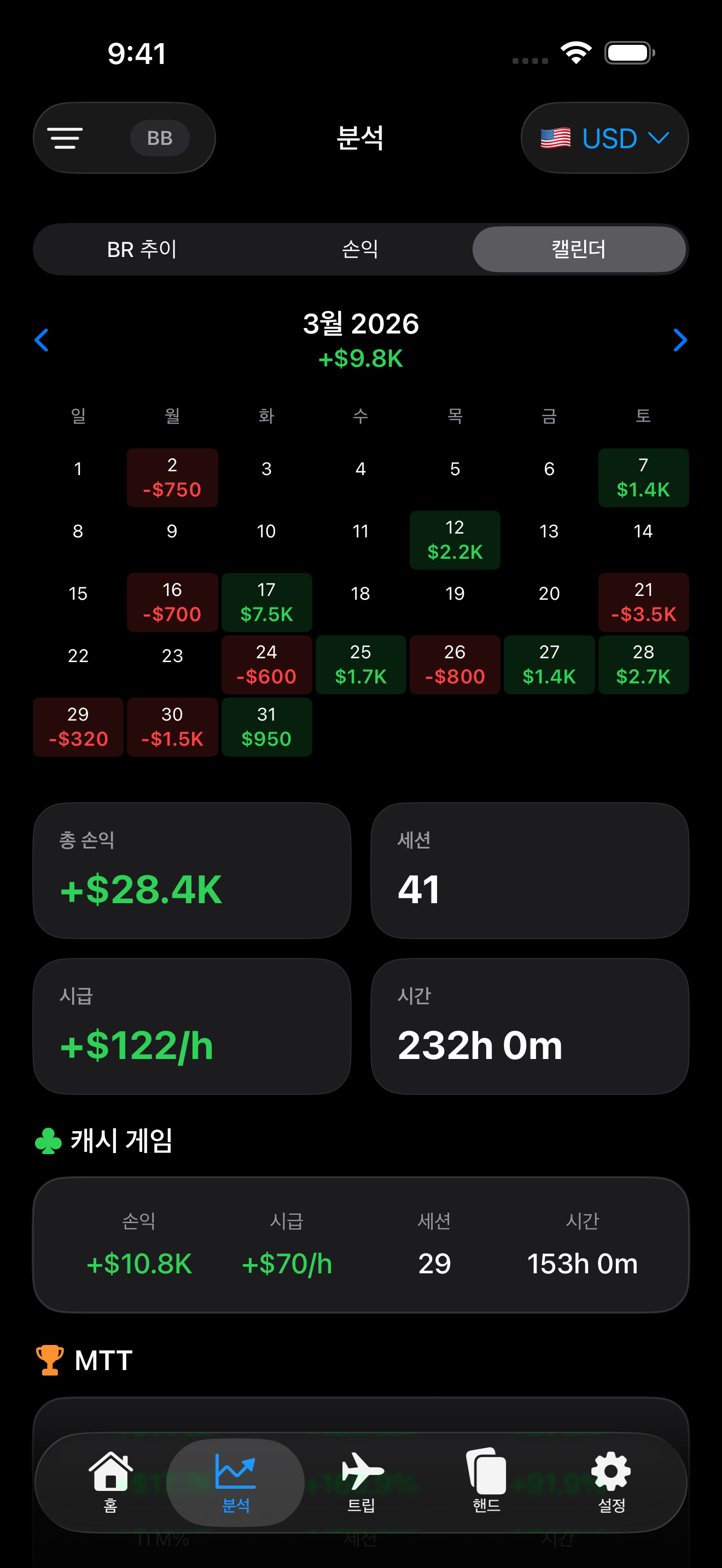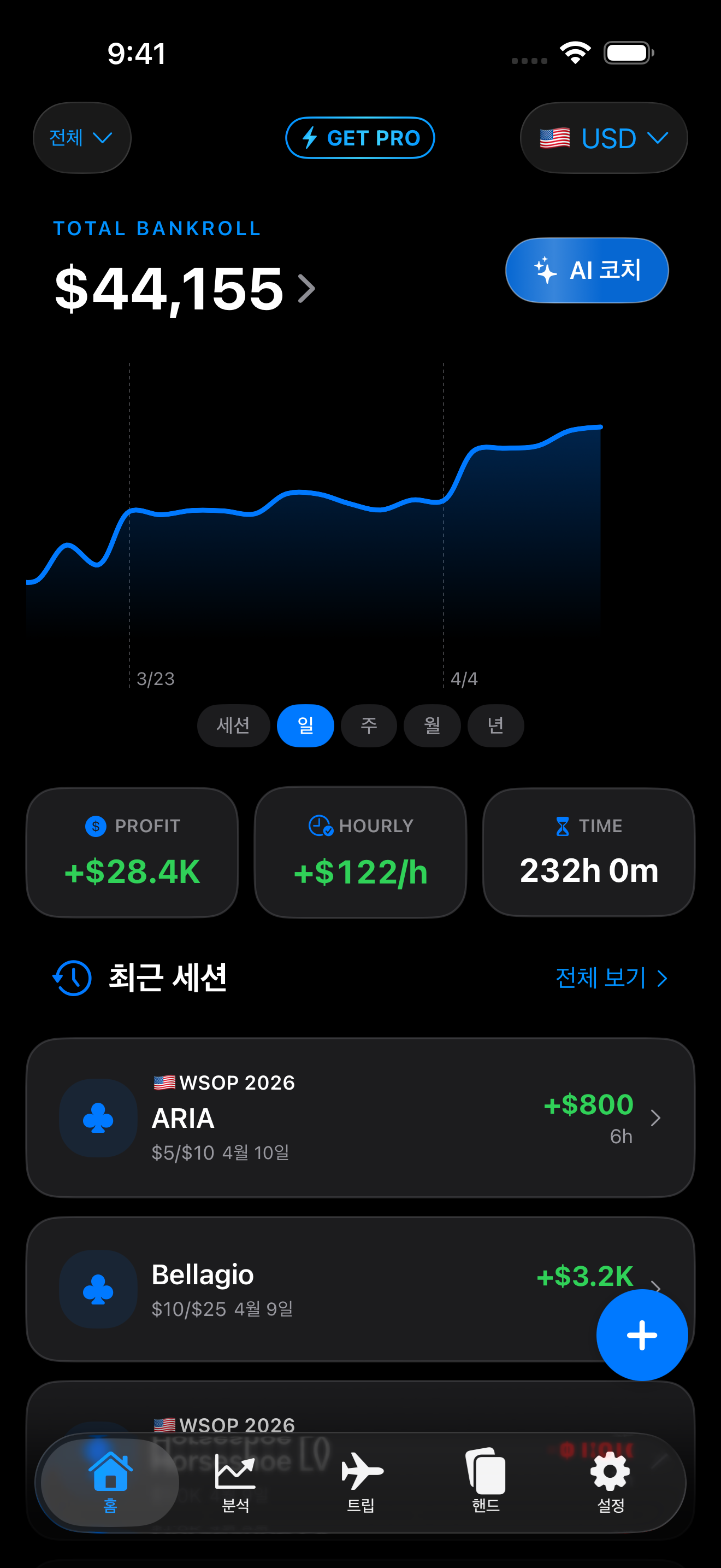 스테이크, 장소, 기간별 손익 분석으로 전략을 개선하세요.